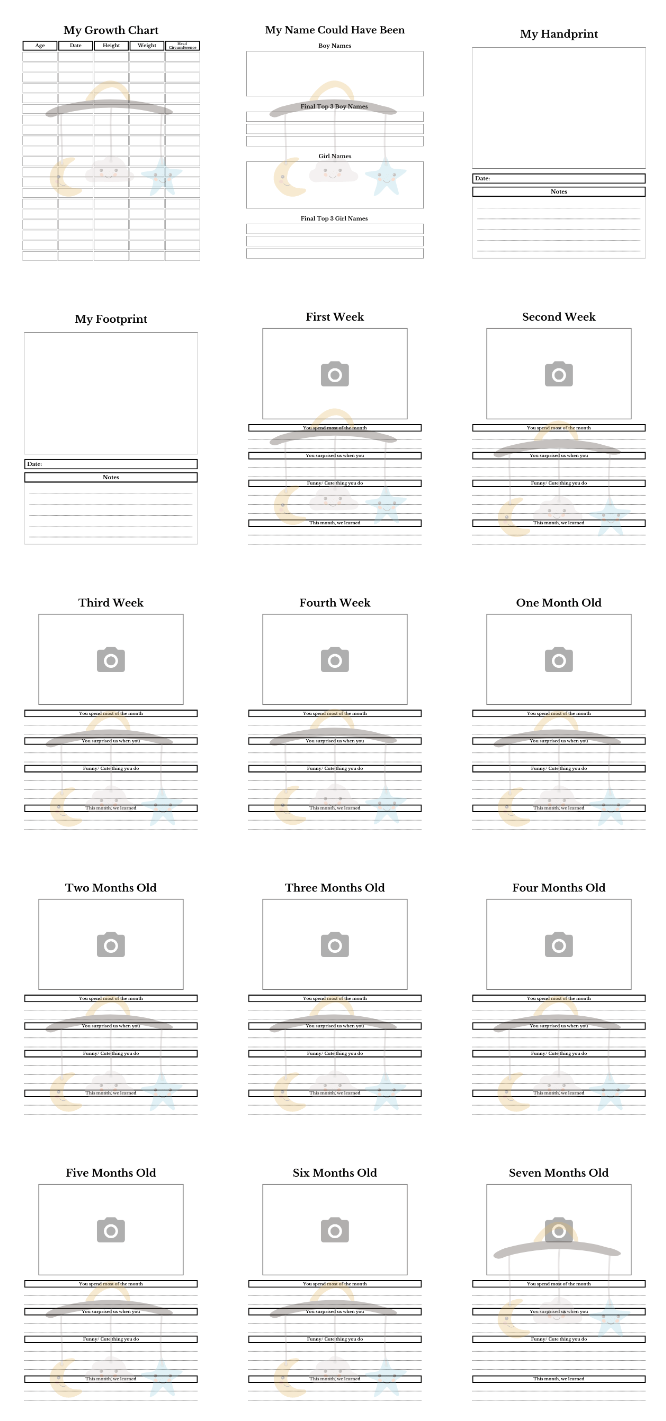 - Monthly Growth Tracker: Document your baby’s growth and changes month by month.